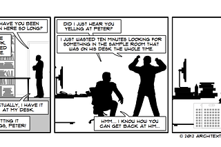 Nine times out of ten, what I’m looking for is on my boss’ desk.