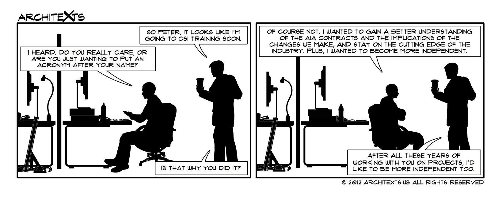 I’m sure there are plenty of people we all work with we’d rather not rely on. Check out the Construction Specifications Institute for information on certification.