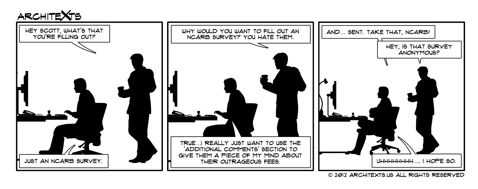 NCARB SurveyModulor ManDec 18, 2025ShareScott can relax, the survey is anonymous. –MaverickThis comic was originally published on November 12th, 2012SubscribeThanks for reading Architexts Archive Project! This post is public so feel free to share it.Share