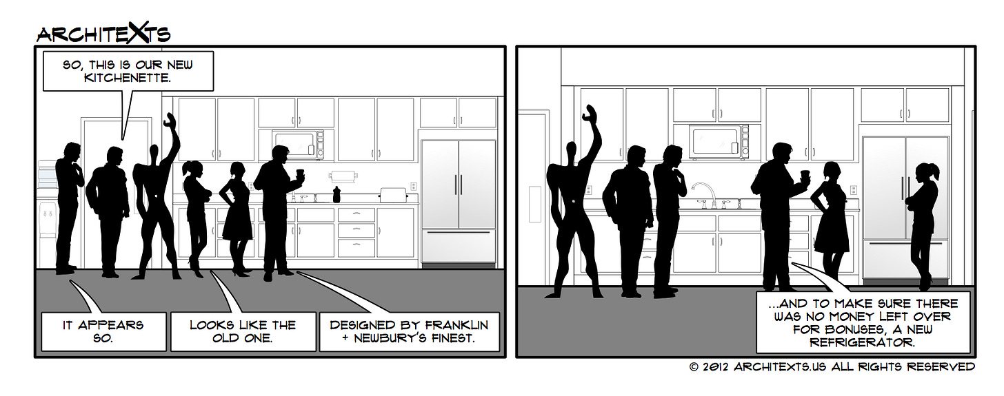 New KitchenetteModulor ManDec 18, 2025ShareHave you ever seen what should have been your bonus go to some trivial office upgrade? –JokerThis comic was originally published on November 2nd, 2012Architexts Archive Project is a reader-supported publication. To receive new posts and support my work, consider becoming a free or paid subscriber.SubscribeShare